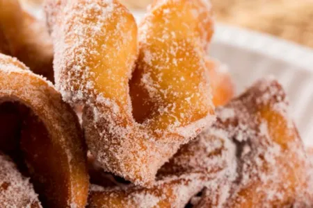 Deixe escorrer sobre papel absorvente e envolva em açúcar com canela.