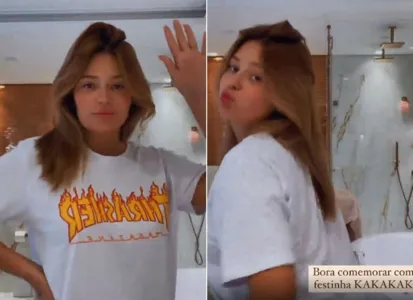 "Hoje é meu aniversário de 3 meses de solteira. Bóra comemorar com festinha", disse ela, aos risos.