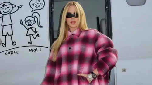 Usando um look rosa e preto, a empresária posou em frente ao seu jatinho, que ainda tem Zé Felipe e os filhos desenhados, e contou que está a caminho de Paris, na França.