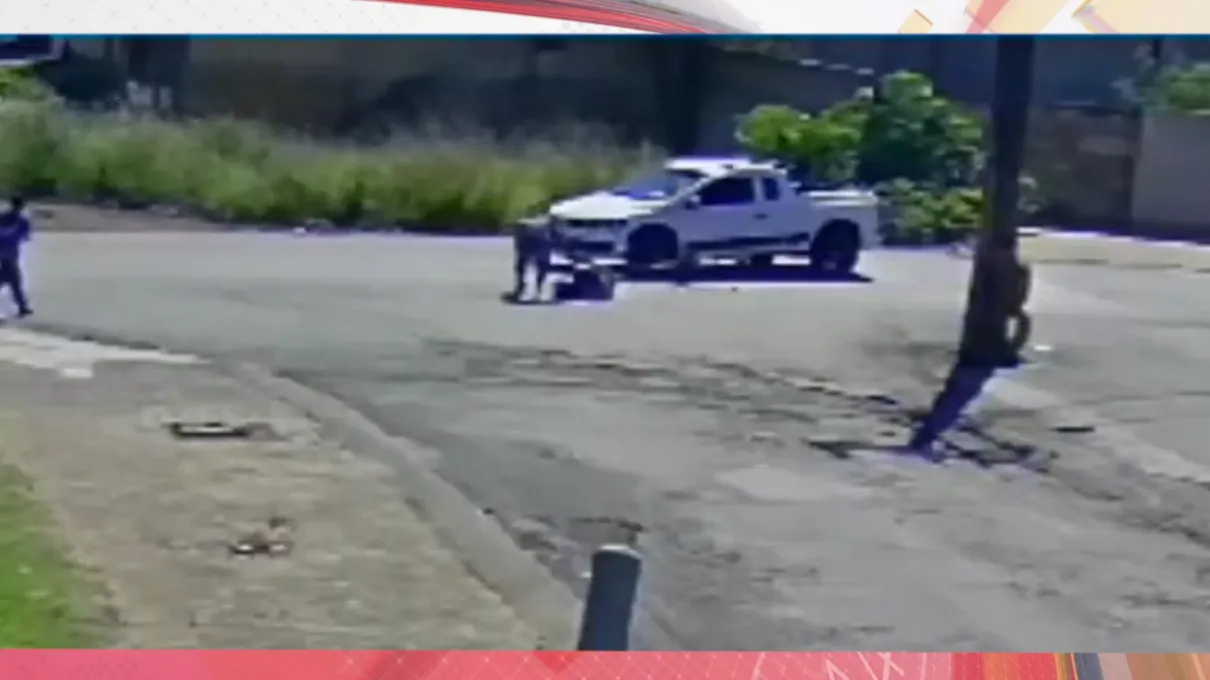 O primeiro acidente aconteceu durante a manhã de sexta-feira. Como é possível ver no circuito de monitoramento, houve uma colisão entre uma picape e uma bicicleta.