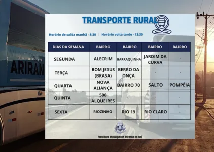 Segundo o prefeito, o transporte gratuito vai garantir mobilidade aos moradores da zona rural, facilitando o deslocamento das pessoas que precisam ir ao centro, assim como quem precisa seguir para a zona rural. O prefeito destaca que, no futuro, o serviço pode ser ampliado com mais dias e horários de transporte para os moradores. O serviço será ofertado de segunda a sexta-feira. Cada dia da semana atende uma localidade. Na segunda-feira, por exemplo, o transporte atende as localidades de Alecrim, Barraquinha e Jardim da Curva.