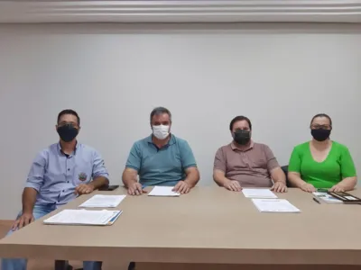 Participaram também da reunião o secretário de fazenda, Silvio Marezi, o secretário de administração e planejamento, Jorge Marcato, e a tesoureira, Paula Nochi.