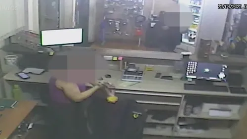 Imagens de câmeras de segurança de um posto de combustível em Marilândia do Sul registraram o momento em que dois homens, de 34 e 40 anos, entram em luta corporal na manhã desta segunda-feira (25). Durante a briga, um deles consegue tomar a arma do outro disparar.
