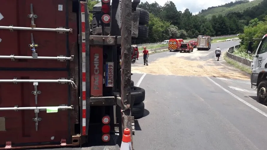 De acordo com as informações do Corpo de Bombeiros, o tombamento ocorreu no quilômetro 307 da rodovia por volta das 10h. O motorista, de 66 anos, ficou preso entre as ferragens e sofreu ferimentos nas pernas e no rosto, sendo encaminhado ao Hospital Universitário pelo transporte aeromédico do Serviço de Atendimento Móvel de Urgência (Samu). O veículo transportava uma carga de agrotóxico que permaneceu intacta após o acidente.