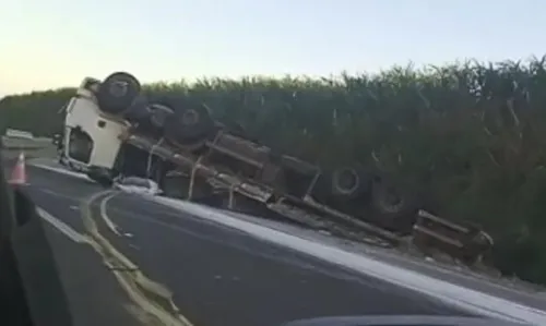 Um caminhão capotou, na manhã desta segunda-feira (16), na BR-376, na saída de Mauá da Serra para Apucarana, cidades que pertencem ao Vale do Ivaí, Paraná. A Polícia Rodoviária Federal (PRF) e equipes de socorro foram acionadas para atender à ocorrência.