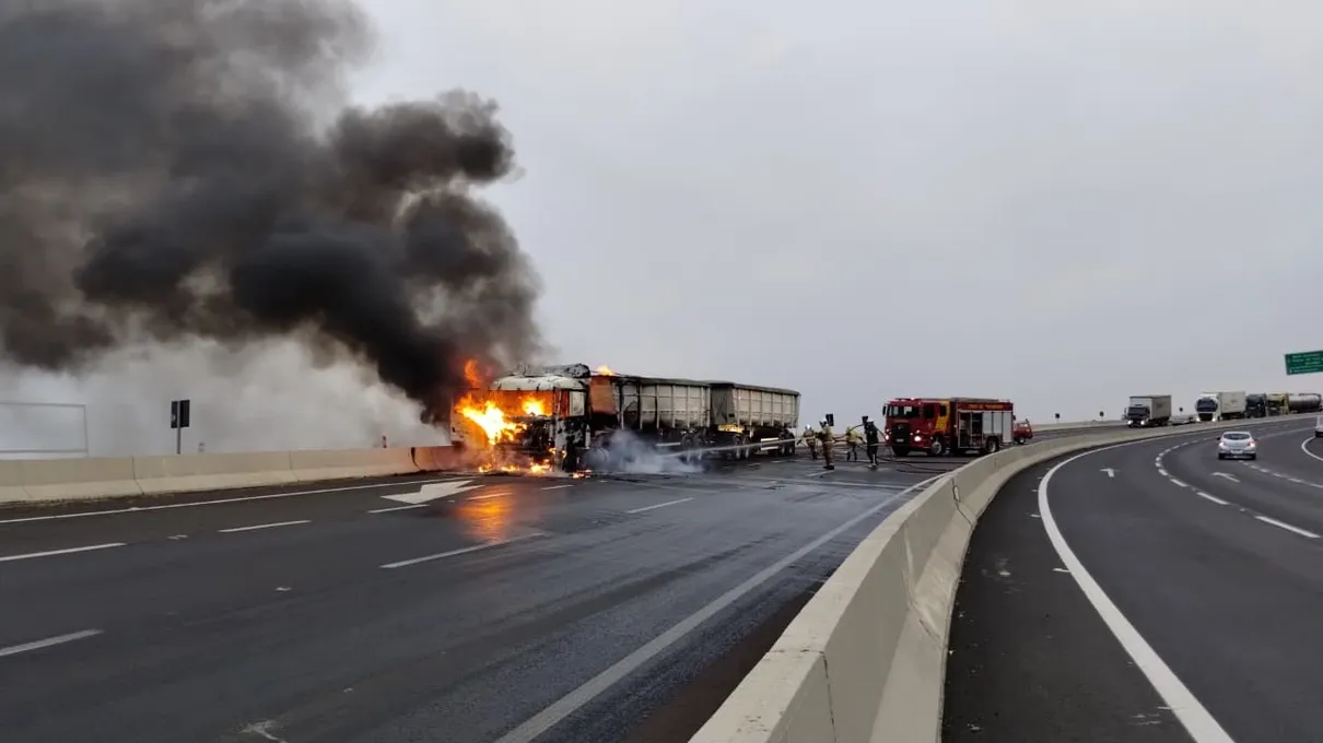 O caminhoneiro, um homem de 34 anos, disse à reportagem que o incêndio aconteceu após uma falha mecânica. Ele chegou a pegar o extintor, porém, o fogo teria se alastrado rápido.