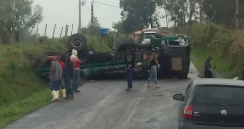 Um caminhão tanque carregado com óleo diesel tombou na tarde deste sábado (09), na estrada entre Rosário do Ivaí e Grandes Rios, próximo a Ponte da Limeira, no Vale do Ivaí.