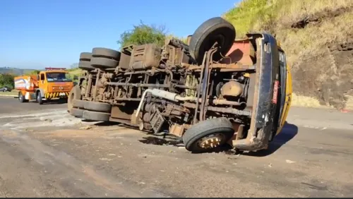Caminhão tomba na BR-369 no trevo de Jandaia do Sul