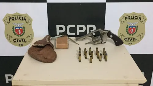 Foi encontrado com o autor um revólver Taurus calibre .38 , com 13 munições intactas e uma deflagrada
