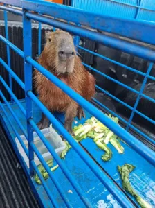 Capivara que estava no centro de Jandaia do Sul é resgatada