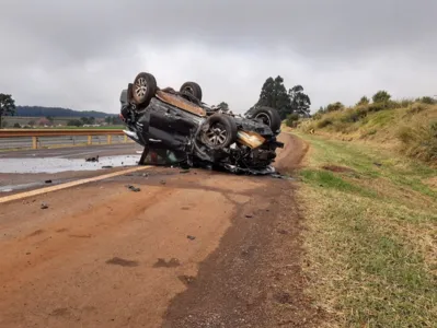 Um capotamento foi registrado no início da tarde deste sábado (17), no km 287 na BR 376 próximo a Mauá da Serra.