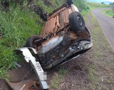 Um carro com placas de São Bernardo do Campo (SP) capotou na manhã desta sexta-feira (1°) na Rodovia do Milho, entre Novo Itacolomi e Borrazópolis.