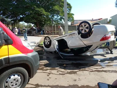 Um capotamento no perímetro urbano de Ivaiporã, município do Vale do Ivaí, mobilizou socorristas e agentes de trânsito no começo da tarde deste sábado, 18.