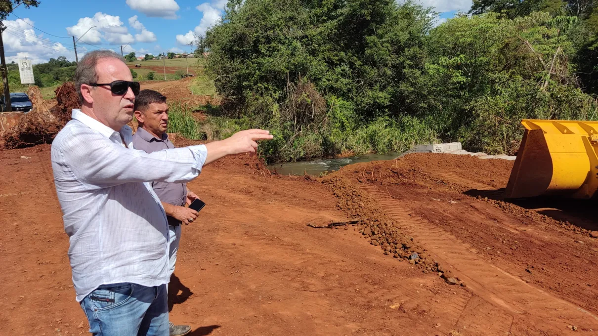 O prefeito de Ivaiporã, Luiz Carlos Gil, acompanhado do secretário municipal de Viação, Ilson Gagliano, visitou nesta terça-feira (26), as obras de alargamento da Rua Três Marias e da ponte sobre o Rio Pindaúva, que liga a estrada do Alecrim, na saída do Jardim Iporã, à Avenida Maranhão, no centro da cidade. A extensão total da obra é de aproximadamente dois quilômetros.