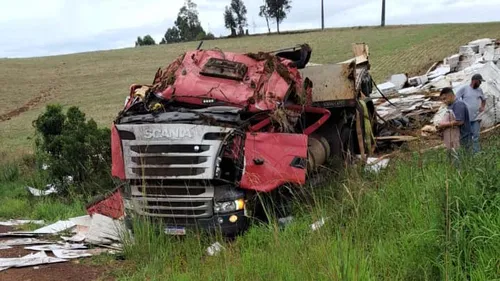 Um motorista de 32 anos ficou ferido após a carreta que conduzia tombar e colidir contra um barranco na PR-466, entre Manoel Ribas e Pitanga, na manhã desta quinta-feira (13).