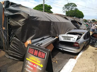Ao tombar, o veículo de carga atingiu um Vectra, que estava estacionado. Por sorte, não havia ninguém no veículo e não houve feridos. Câmeras de segurança de um comércio flagraram o momento do acidente. Assista: