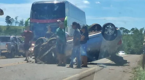 Carro capota e quase atinge ambulância na BR-369