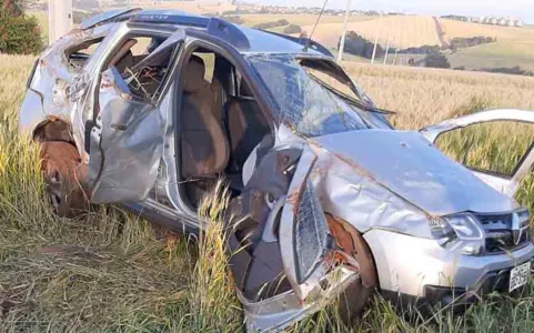 Ele foi encontrado por uma pessoa, passou pelo local e notou o veículo capotado, um Renault Duster, no meio de um plantio de trigo, e acionou as equipes de socorro.
