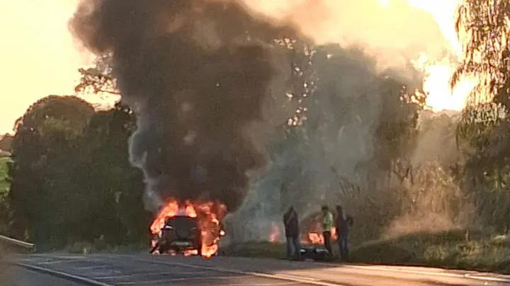 Veículo foi totalmente consumido pelo fogo; ninguém se feriu