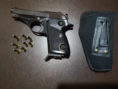Segundo a PM, na casa do casal, na cozinha foi encontrado um coldre em cima da mesa e a equipe apreendeu uma pistola calibre 22 e oito munições intactas.