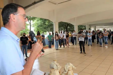 Servidores municipais de Arapongas participaram nesta quarta-feira, 16, de uma celebração no Paço Municipal, presidida por padre Célio Tarozzo, do Santuário Santa Rita de Cássia de Lunardeli. O ato contou com medidas sanitárias devido à pandemia da Covid-19, como a atualização de máscaras. A abertura foi feita pelo vice-prefeito, Jair Milani, representando o prefeito Sérgio Onofre, que cumpria agenda fora, e também pelo secretário de Administração, Valdecir Scarcelli.