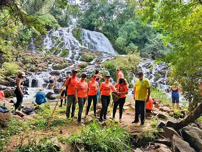 A programação teve início com um café da manhã no Rancho Catavento, seguido por uma trilha de aproximadamente cinco quilômetros, passando pelas Cachoeiras Ruminante, Chicão 1 e Chicão 2. Durante o percurso, os participantes puderam apreciar paisagens naturais preservadas, vivenciando momentos de contato direto com o meio ambiente.