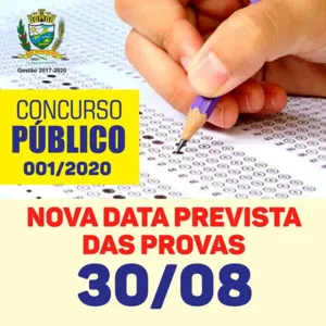 A nova data da Prova Escrita Objetiva para os cargos de que trata o edital e a prova prática está prevista para ser aplicada no dia 30 de agosto de 2020, sendo que, horário e local ainda serão divulgados.