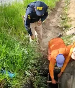 O homem foi encontrado por trabalhadores de manutenção de rodovia do Departamento Nacional de Infraestrutura de Transportes (DNIT) e retirado com o apoio da Polícia Rodoviária Federal (PRF).