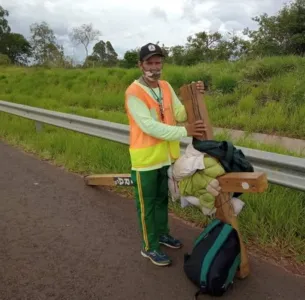O devoto Claudino de Oliveira de 46 anos que saiu Cambira, rumo Aparecida do Norte, carregando uma cruz de 35 Kg para pagar uma promessa já está na região da Rodovia Presidente Castelo Branco. Ela passa pelo município de Cesário Lange, interior de São Paulo.