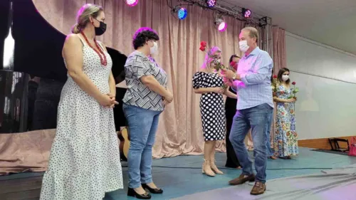 O prefeito Luiz Carlos Gil também marcou presença no evento e deu as boas-vindas a todas as presentes. Falou da importância das mulheres na família e na sociedade, de como elas estão cada dia mais assumindo cargos importantes na sociedade. Ele citou a delegada Magda, a presidente da Câmara de Vereadores Gertrudes Bernardy e a juíza da comarca Adriana Marques dos Santos.