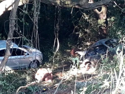 Os carros saíram da pista e caíram em um barranco, um Monza com placas de Grandes Rios e um carro cinza de Curitiba. Os veículos foram resgatados na manhã deste sábado (10). Não há informações sobre feridos.