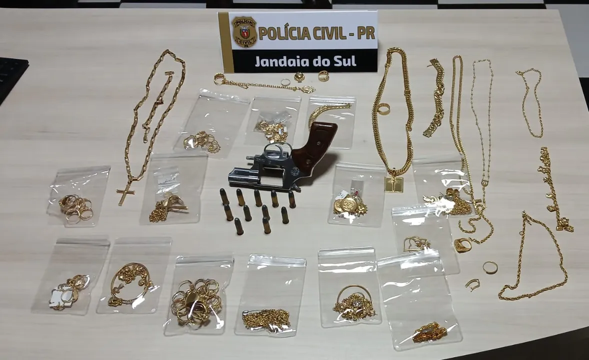 Durante as diligências, a Polícia Civil apreendeu um revólver calibre .38 e promoveu o sequestro de bens de alto valor, entre eles joias e um veículo avaliado em cerca de R$ 200 mil. As ações fazem parte de uma investigação que apura a prática dos crimes de estelionato, extorsão e exploração de prestígio.