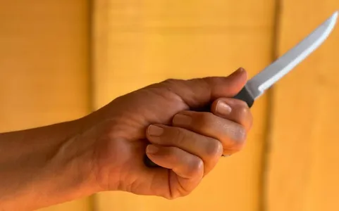 A vítima relatou que, por ciúmes, sua esposa tentou esfaqueá-lo no pescoço, mas ele colocou o braço na frente para se proteger.