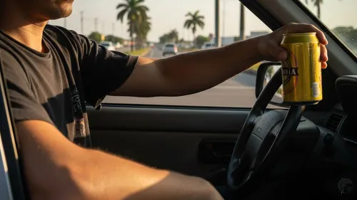 Durante patrulhamento, os policiais viram um carro Gol prata trafegando no sentido contrário. O motorista estava com uma lata de cerveja na mão e bebendo enquanto dirigia.