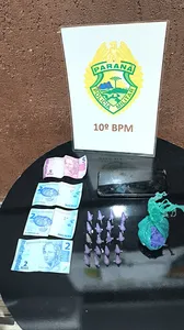 No total, foram apreendidos 21 pinos de cocaína (aproximadamente 14 gramas), duas porções de crack, um aparelho celular e R$ 11,00 em dinheiro.
