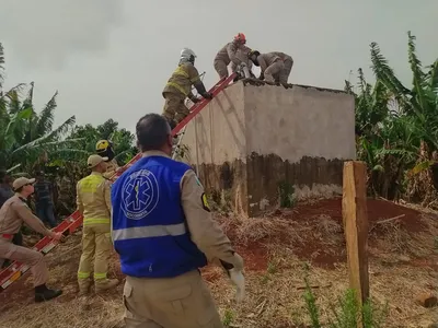 Vítima foi resgatada de dentro de uma caixa d'água após ficar inconsciente; Samu e bombeiros foram ao local