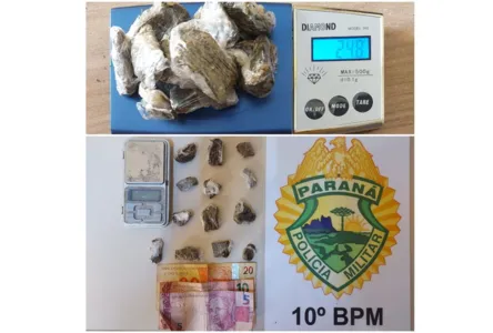 Durante buscas pela casa, a PM encontrou quatro porções de maconha já preparadas pra a venda, dinheiro e uma balança de precisão. Já no vaso sanitário a equipe ainda conseguiu localizar mais nove porções da droga que não desceram pelo ralo.