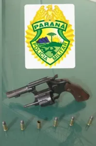 Em patrulhamento, a equipe viu uma GM S10 estacionada em frente à uma propriedade rural e dentro uma pessoa desacordada. Ao verificar, a PM encontrou o homem dormindo sentado no banco do motorista e do seu lado, no banco do passageiro, tinha um revólver calibre 32, marca Rossi, carregado com seis cartuchos, sendo um deflagrado.