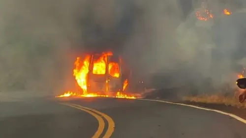 A van atingida pelo fogo era utilizada para transportar trabalhadores de uma empresa que presta serviços ao Departamento de Estradas de Rodagem do Paraná (DER-PR).