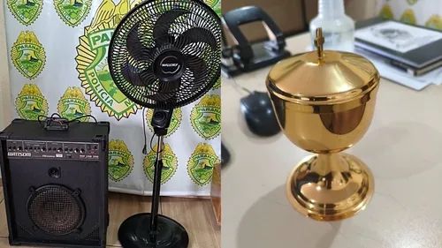 A Polícia Militar de Marilândia do Sul conseguiu recuperar, nesta quarta-feira (25), diversos itens que haviam sido furtados de uma igreja no início do mês de fevereiro. Entre os materiais apreendidos estão aparelhos de som, um ventilador e um recipiente sagrado banhado a ouro, utilizado em rituais católicos.