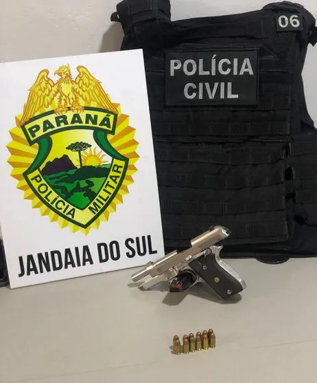 Conforme a PM, os homens estavam na Rua Marechal Floriano Peixoto na zona rural do município e a arma, uma pistola calibre 380 foi encontrada.