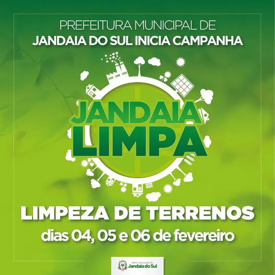 Em fevereiro, a Prefeitura Municipal de Jandaia do Sul inicia a Campanha Jandaia Limpa que deve acontecer por etapas e tem por objetivo atuar e conscientizar a população para termos uma cidade sem lixo nas ruas. Com isso, além de termos uma cidade com mais qualidade de vida e espaços públicos mais limpos, também estaremos contribuindo para o combate de diversas doenças, como a dengue.