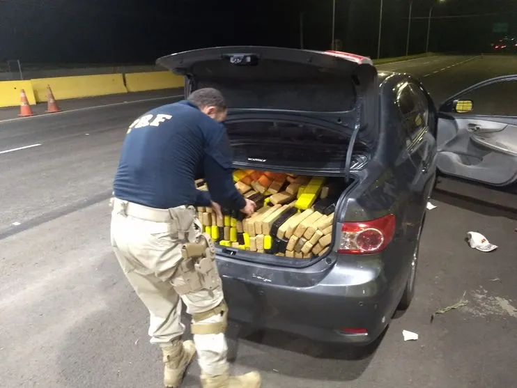 A Polícia Rodoviária Federal (PRF) prendeu em flagrante na noite de quinta-feira (11), em Jandaia do Sul um jovem de 26 anos por tráfico de drogas. O Toyota/Corolla conduzido por ele havia sido furtado em Cambé e transportava 388 tabletes de maconha, totalizando 293,9 kg.