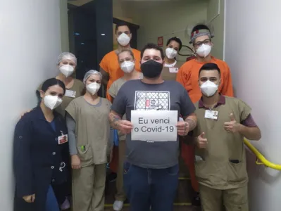 O paciente deu entrada na Instituição com 50% do pulmão comprometido pela doença e comemorou alta médica com a equipe do hospital. "Graças a Deus estou de alta, minha família esteve sempre em orações por este momento”, ressalta.