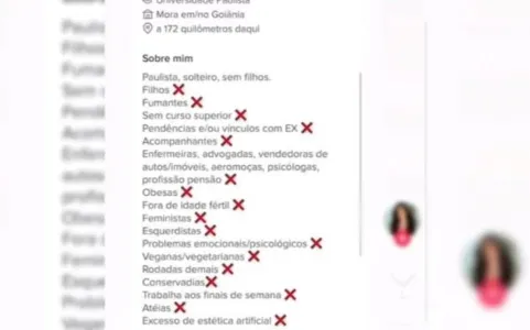 Em um aplicativo de relacionamento, o empresário listou uma série de características que ele não aprova em uma mulher.