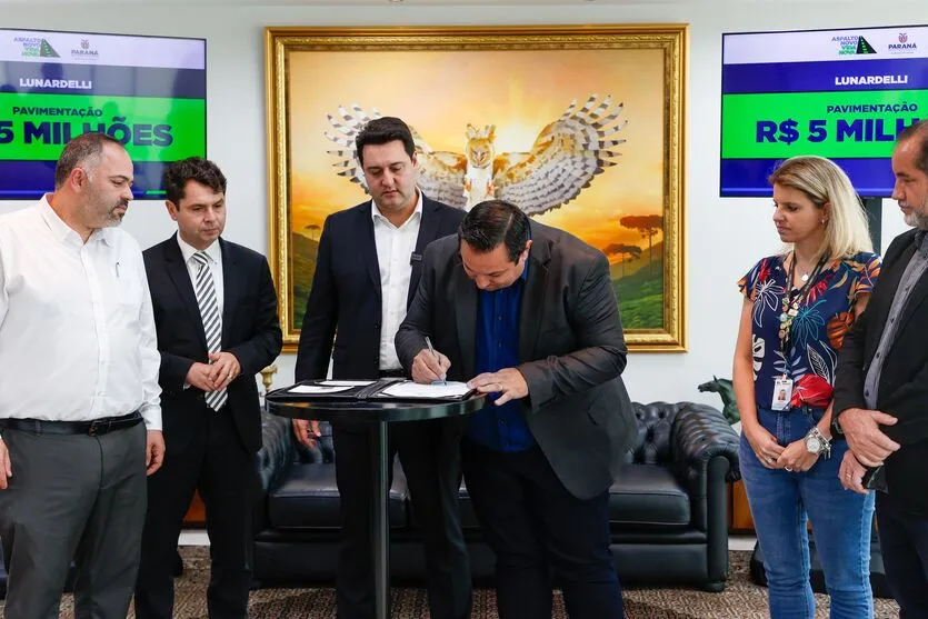 O governador Carlos Massa Ratinho Junior assinou ontem contrato de R$ 5 milhões para obras de pavimentação em Lunardelli. A liberação integra um pacote de mais de R$ 44,6 milhões pelo programa Asfalto Novo, Vida Nova que beneficia dez municípios do Paraná. Do total liberado nesta segunda-feira, cerca de R$ 43,7 milhões serão investimentos feitos com recursos do Governo do Estado e R$ 947 mil serão investimentos feitos pelos próprios municípios como contrapartida.