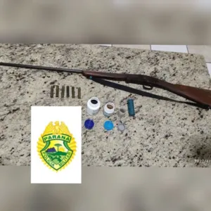 PM de Cambira apreendeu uma espingarda, munições e frascos com pólvora e chumbo com o agressor