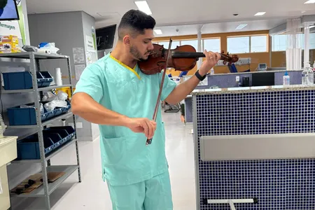 PROJETO MUSICAL – O projeto nasceu em agosto de 2025. O médico atua como geriatra na unidade e diz que a música tem um efeito imediato sobre as emoções. "O foco são os pacientes, mas também a equipe técnica, enfermeiros e médicos, além de outros colegas profissionais em geral. A música ajuda o ambiente de trabalho a ficar mais leve”, explica Joasly.
