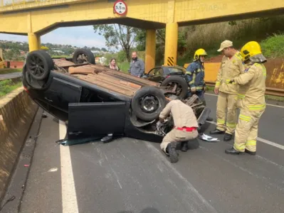 Moradora de Apucarana capota o carro ao desviar de cachorro em rodovia