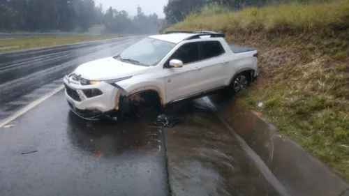 Rosinéia contou que trafegava com seu Fiat/Toro, quando se deparou com a pista escorregadia, por conta da chuva e de um caminhão que tombou carregado com óleo, e por conta disso, acabou perdendo o controle do carro e colidindo.
